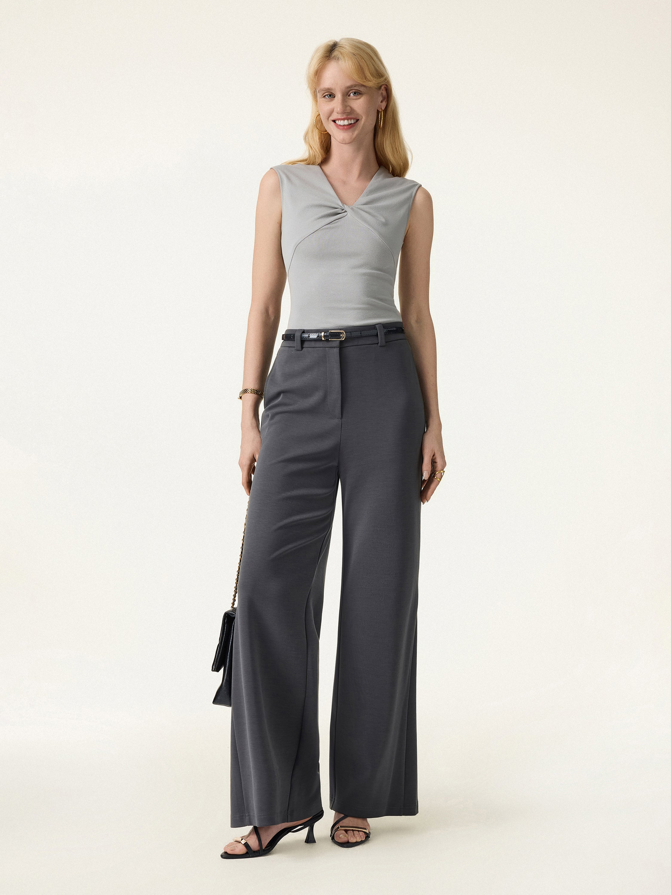 Wrinkle-Resistant High Rise Flared Trousers with Pockets
